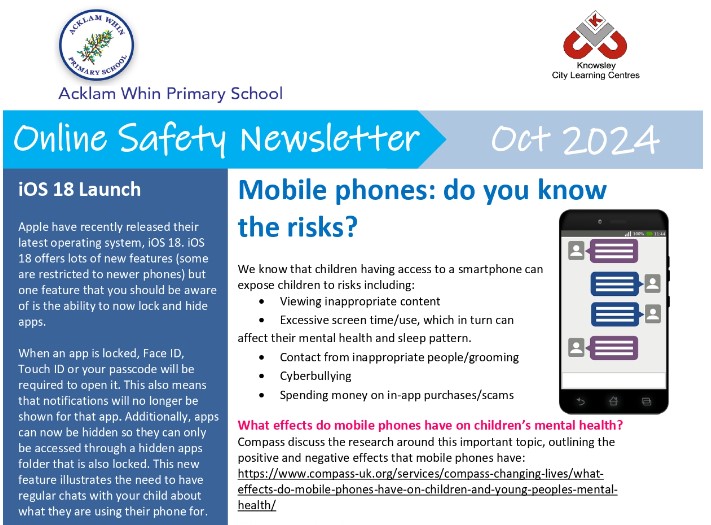 As part of our commitment to supporting the whole school community, we send out a monthly Online Safety Newsletter. This provides parents with up-to-date guidance, useful tips, and clear information about how to help children use technology safely and responsibly at home.